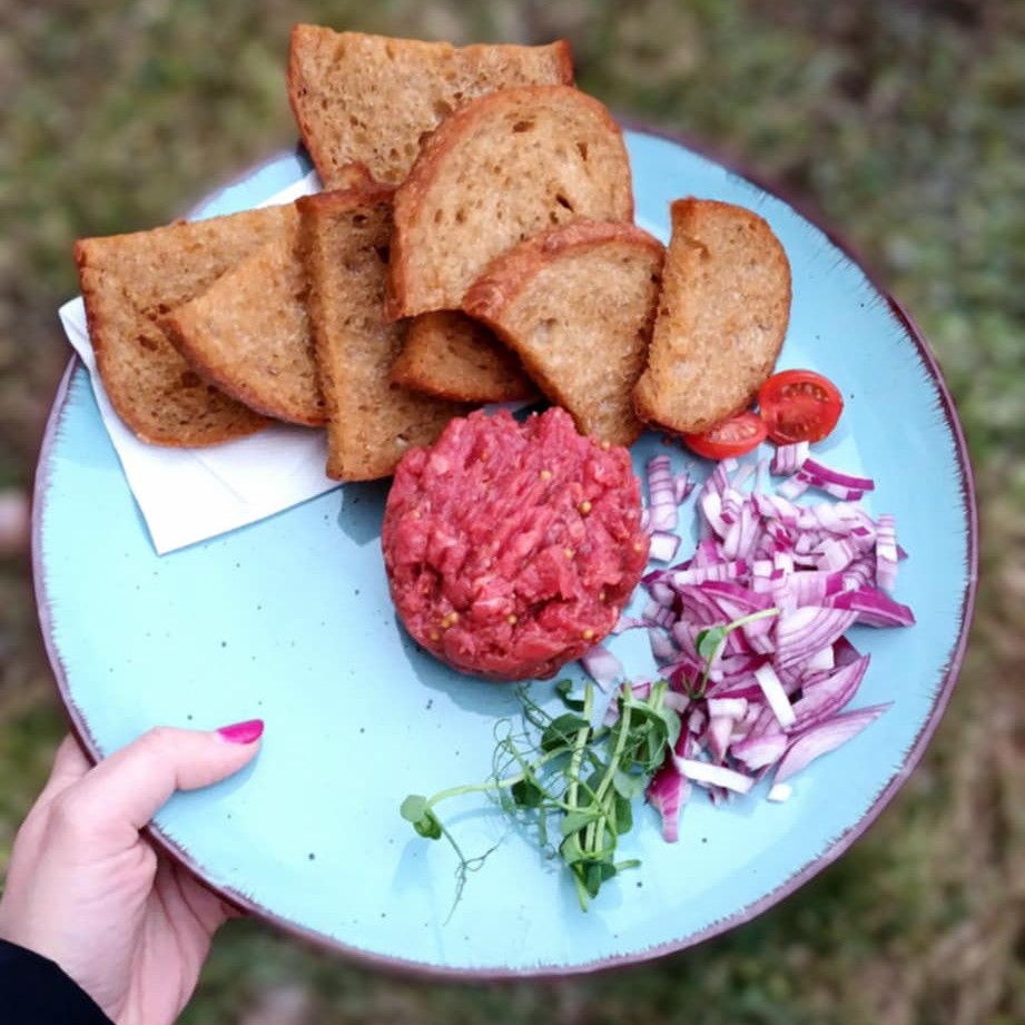 100g tataráku z pivního sýru s hrubozrnnou hořčicí, červenou cibulkou a se 4ks topinek (1,7,10)